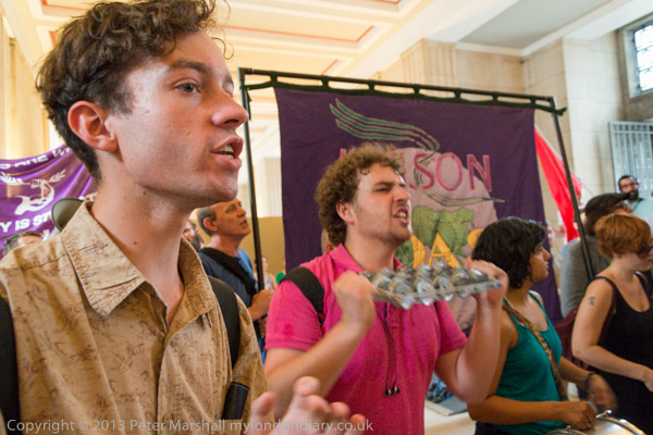 ![]() The protesters went into the open lobby outside the entrance to the Senate House ![]() and continued their noisy protest there ![]() chanting 'Sick Pay, Holidays, Pension Now!' and other slogans ![]() and blowing drums, banging bells and using the megaphones ![]() ![]() ![]() ![]() ![]() ![]() |