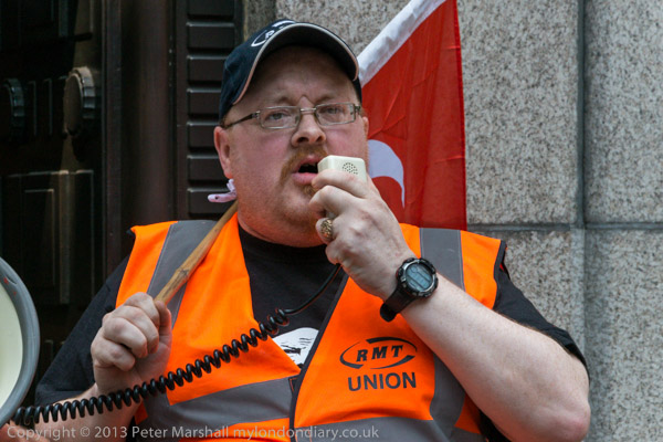 ![]() After a bit they left ![]() ![]() ![]() ![]() and walked around the building making a lot of noise outside ![]() and at the locked south entrance ![]() ![]() ![]() ![]() There was a message of solidarity from the RMT tube cleaners |