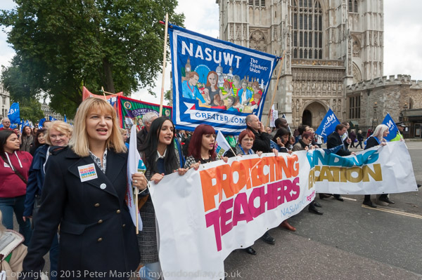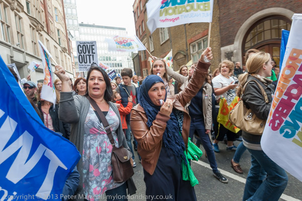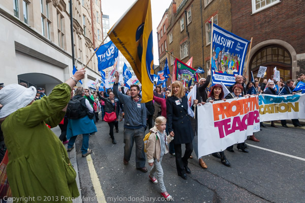 The march went past the Department for Education to a rally a short distance along the road