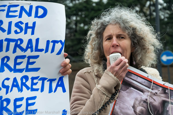 Before the protest finished the protesters lined up outside the Irish embassy for a group picture