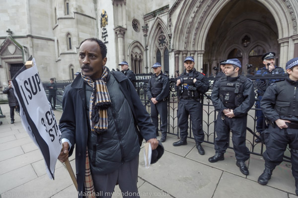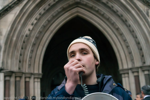 Students outside the Royal Courts of Justice call for Justice for Mark Duggan and others
