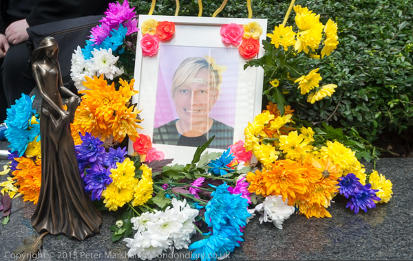 Paula speaking and Clare Glasman of Winvisible next the their banner