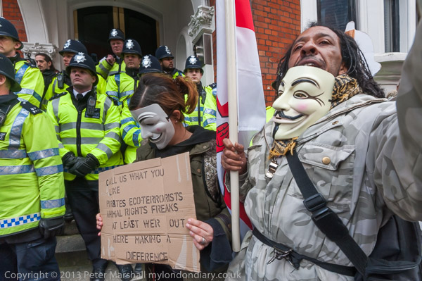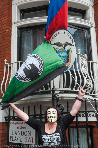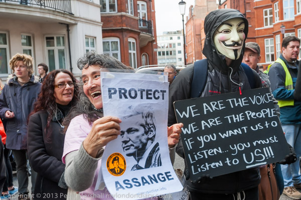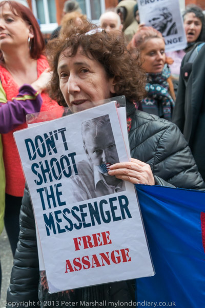 In front of the Ecuadorian embassy calling for Assage to be allowed to leave and go to Ecuador