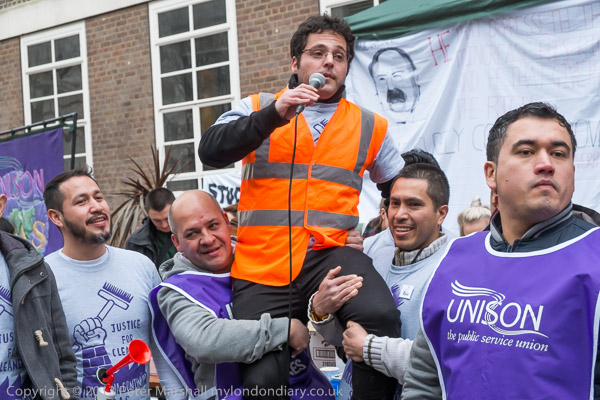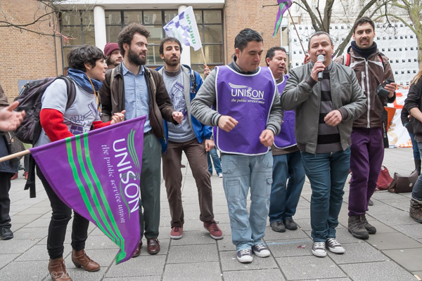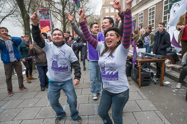After the speeches, a Colombian band came to play and the cleaners and their supporters started to dance