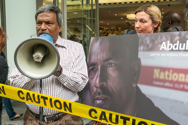 Amin Haque of the National Garment Workers Federation in Dhaka speaking