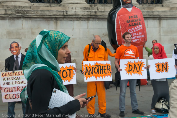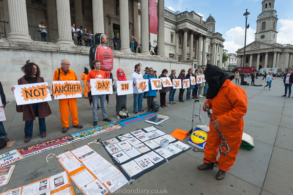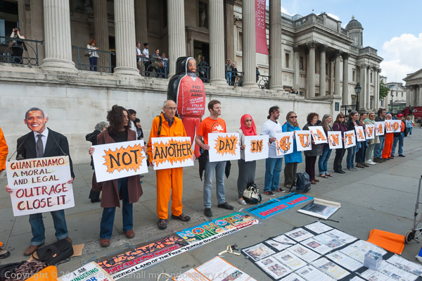 and spelt out the message - 'Not Another Day in GUANTANAMO'