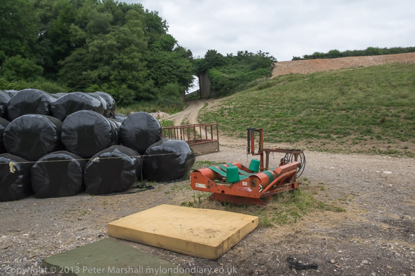 ![]() The line here was on an embankment ![]() With a bridge over a farm track ![]() The road went through between the farm buildings ![]() ![]() ![]() and soon we could see the viaduct. There is a footpath marked direct to it, but it seemed to be overgrown and part underwater ![]() So we continued along the road, taking a short cut across by a pond where the road goes on a loop ![]() Soon we got a better view of the Cannington Viaduct ![]() Quite an impressive structure |