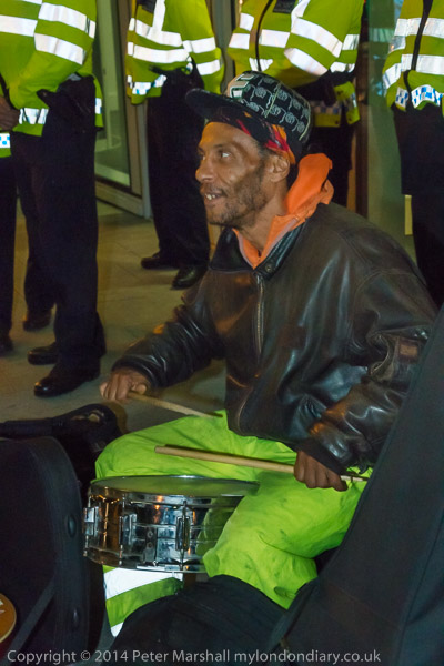![]() Ian Bone of Class War speaks and introduces Cosmo, who has come from Cardiff to sing at the protest ![]() ![]() ![]() ![]() Ian Bone does a little dance ![]() and so does the 'Class War We're Back!' banner with Marina Pepper as Cosmo plays and sings ![]() ![]() ![]() and Marina leads the Lucy Parsons banner too ![]() Cosmo is a great songwriter and performer - his web site is worth a visit and you can hear some of the songs he performed |