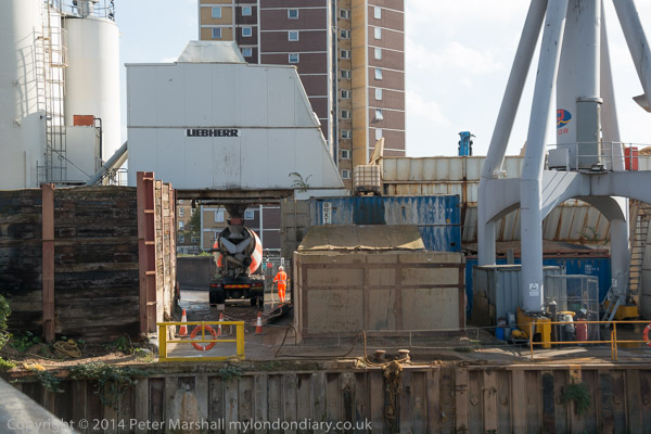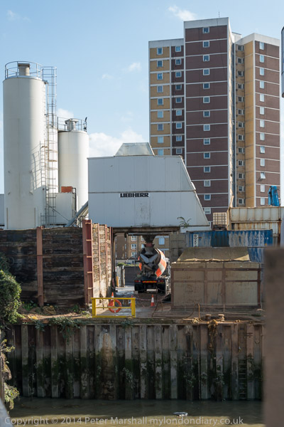 Looking south from the east end of Deptford Creek Bridge, straight into the midday sun