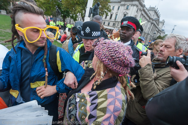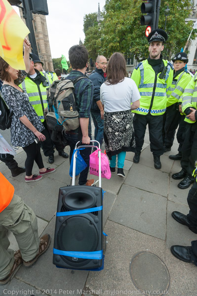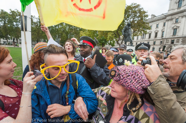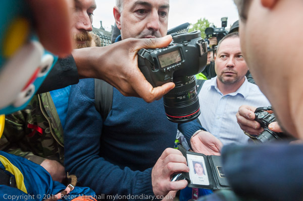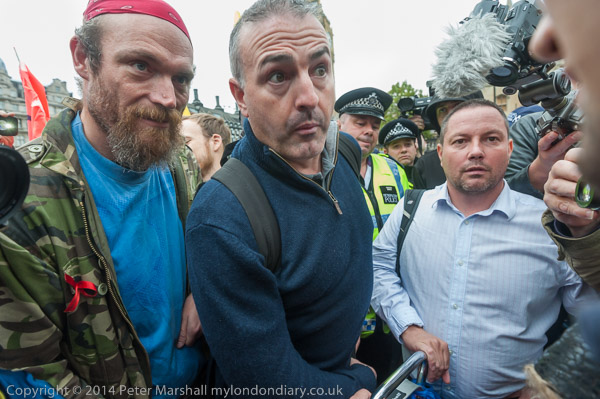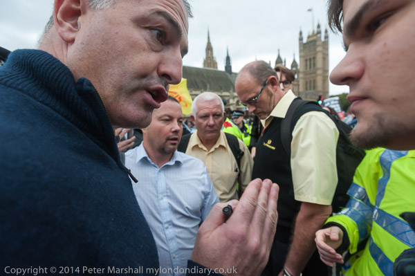 and there is a great deal of argument. The police stop protesters intervening and try to calm things down