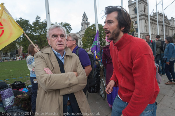 as the protesters continue. John McDonnell MP has now joined them