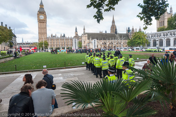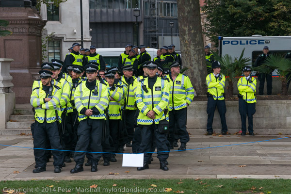 More police arriving and form up in small blocks around the square, waiting for the order to charge
