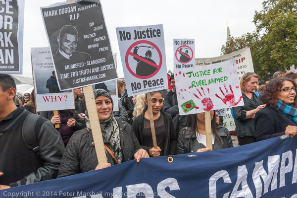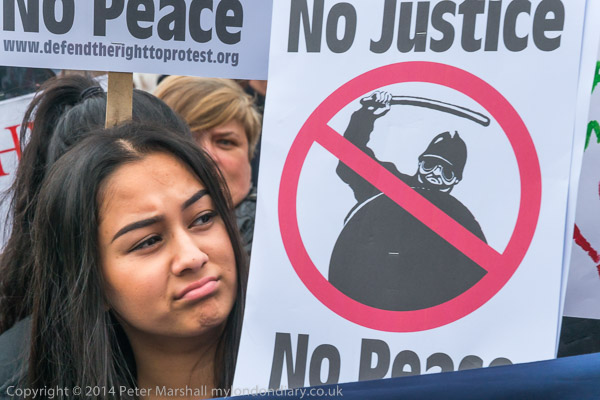 'A Racist Police works to shoot to Kill - No Justice - No Peace'