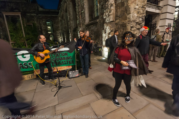 Some going into the bank for the party stopped to talk and argue with the protesters, and perhaps learnt something