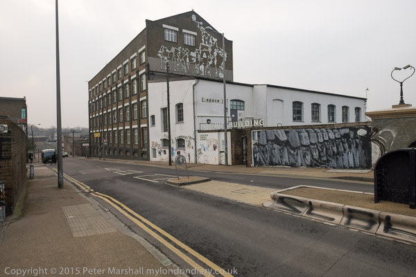 Play Your Part and the boathouse of the Eton Manor Rowing Club at Hackney Wick