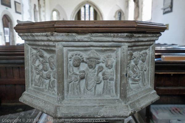 and a rather fine C15 font with panels for the Seven Sacraments of the Catholic Church.
