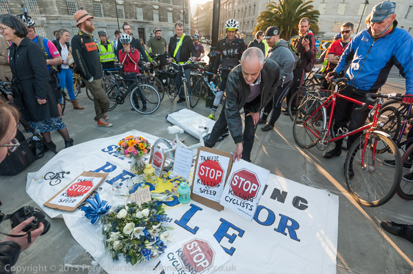 Donnachadh McCarthy gets up to announce an end to the die-in