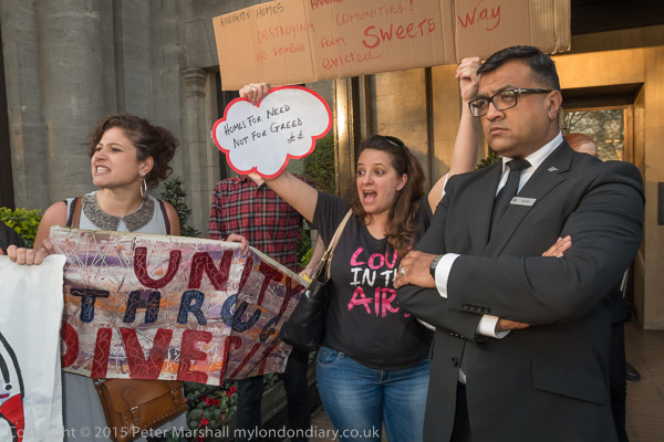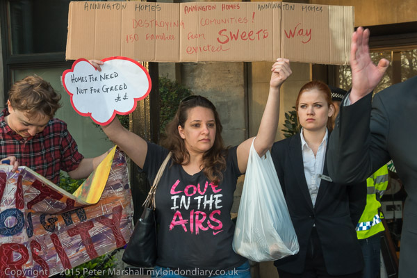 Sweets Way protesters against the demolition of homes by Annington Homes who will replace them by luxury flats