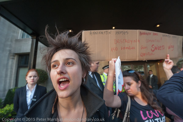 Most of the protesters then moved to the back entrance of the hotel, where staff quickly closed the main gate