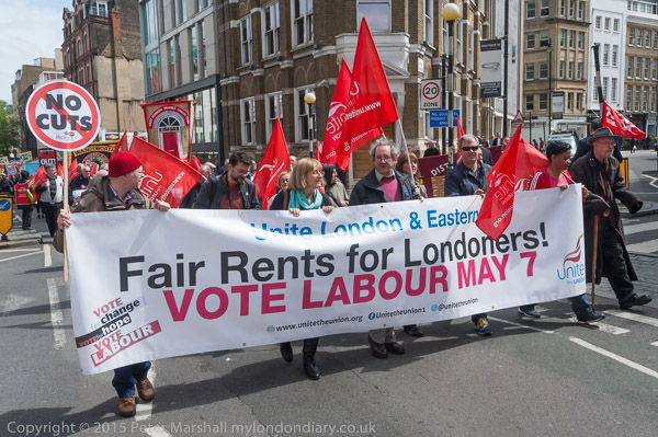 Clerkenwell to Trafalgar Sq, London. Fri 1 May 2015