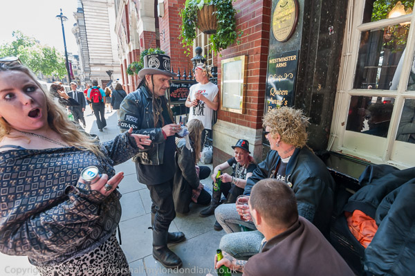 and more turn up to be photographed with Ian Bone on the street outside the pub
