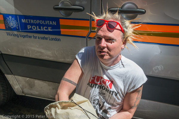 Other supportes of Class War arrive for the anti0austerity protest later in the day