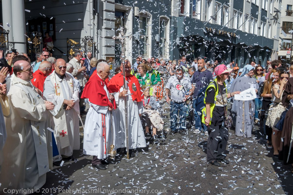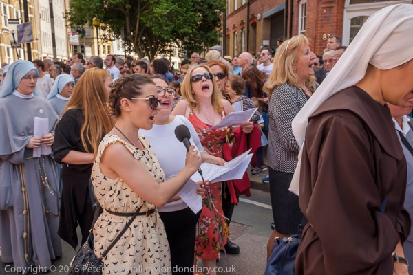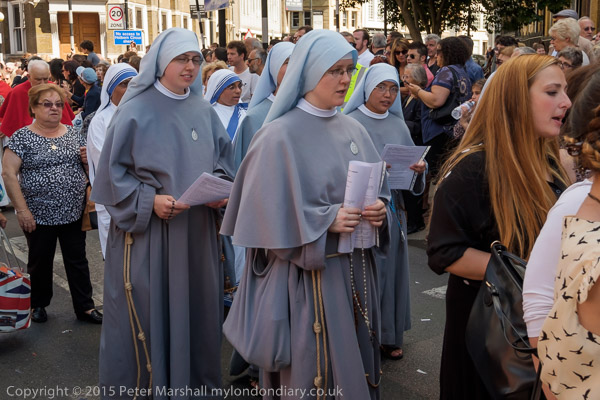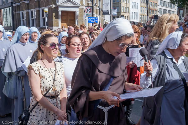 The congregation, led by singing nuns joins on to the end of the procession
