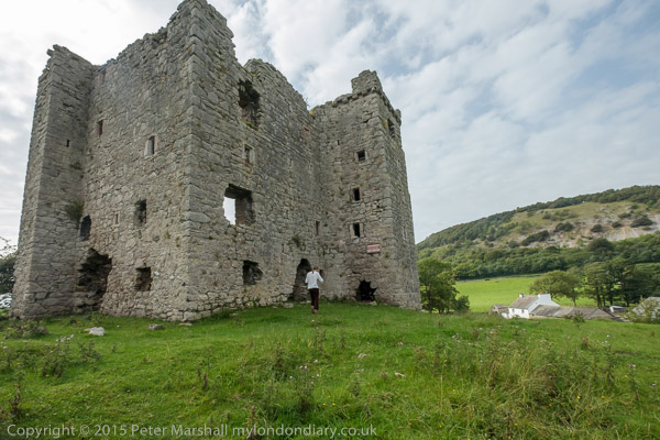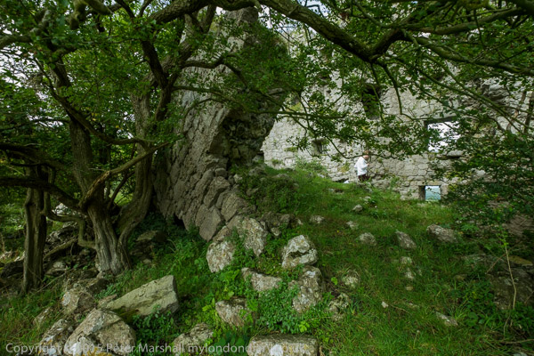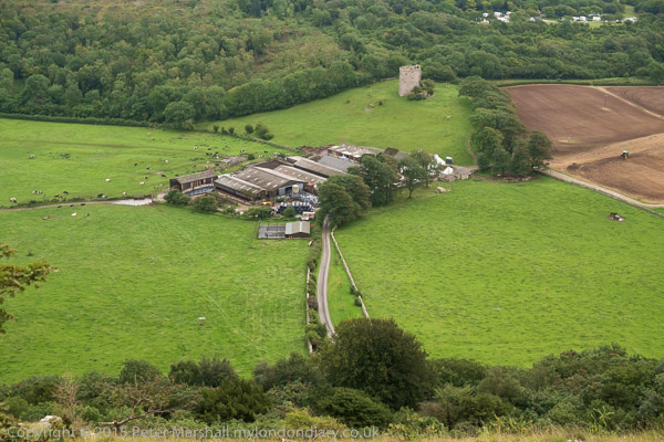 Arnside Tower and a farm were around 130 metres below us and perhaps 400m away but we walked much further to reach them