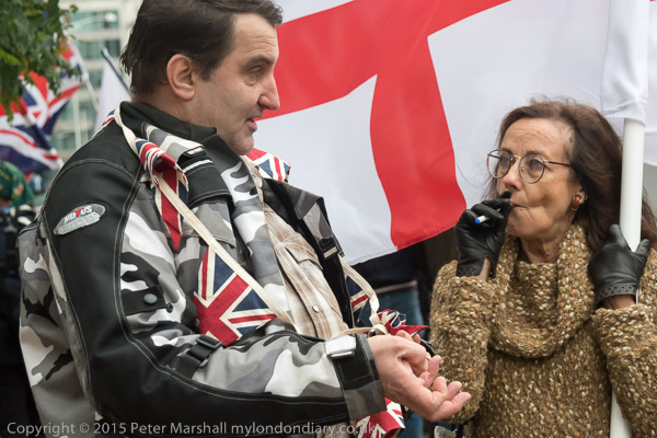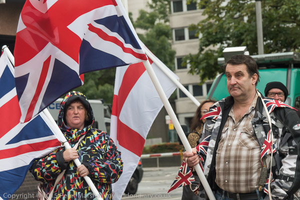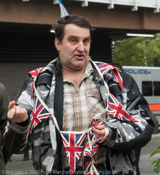 One BNP supporter came complete with Union Flags on bunting around his neck