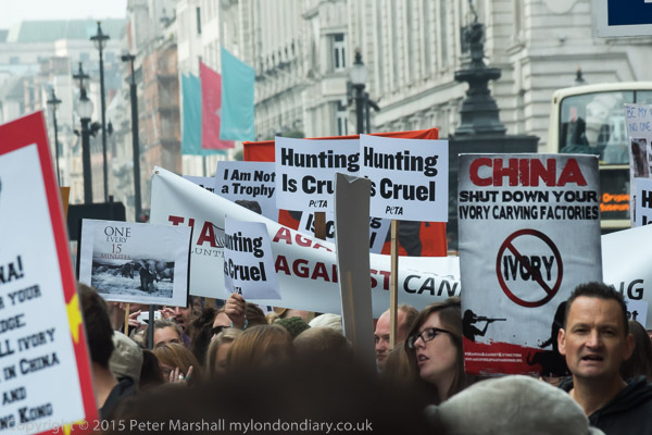 'One Every 15 minutes' 'Hunting is Cruel' ' China Shut Down Your Ivory Carving Factories'