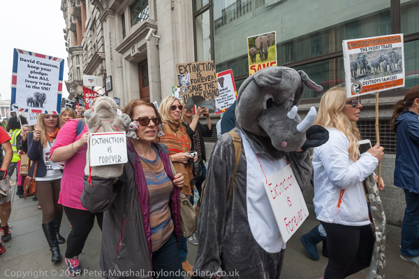 There was a whole sheet full of slogans 'Rhinos & elephants must be saved - Time to stop the bloody trade!' was just one of a dozen variations