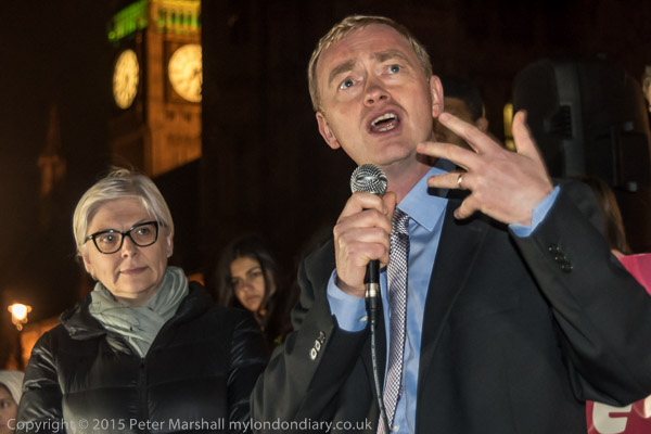 Liberal Democrat leader Tim Farron, MP for Westmorland and Lonsdale speaks at the vigil