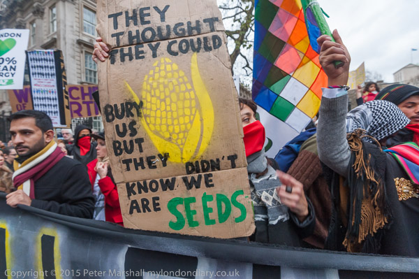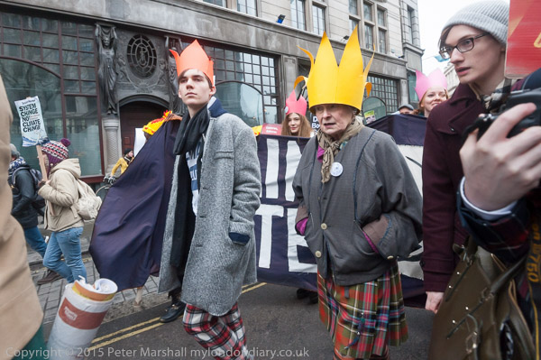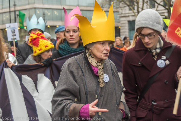 Dame Vivienne Westwood with her Climate Revolution marchers came up close behind the Global Frontlines group