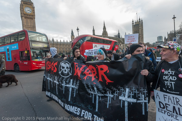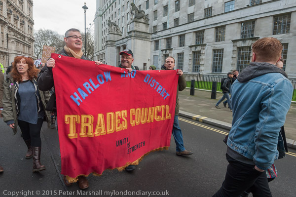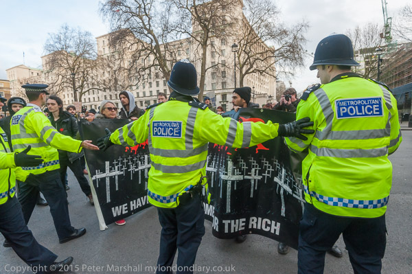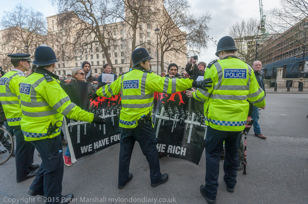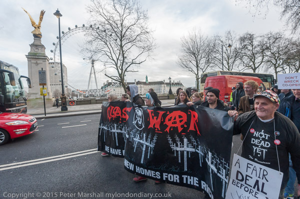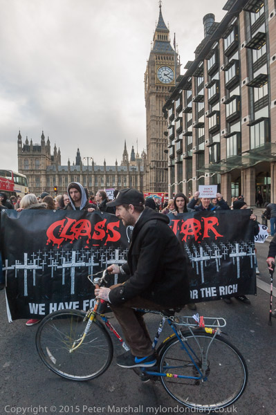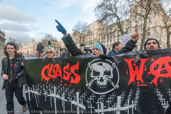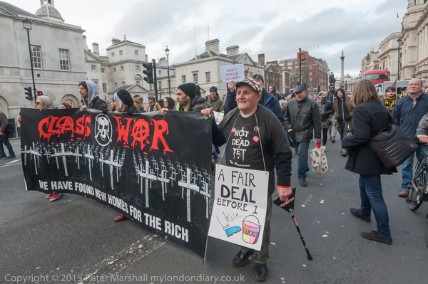 and the march set off with Terry walking with the Class War banner, ignoring police requests to keep on the pavement