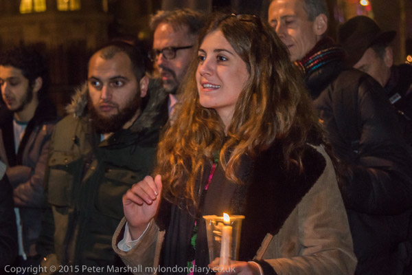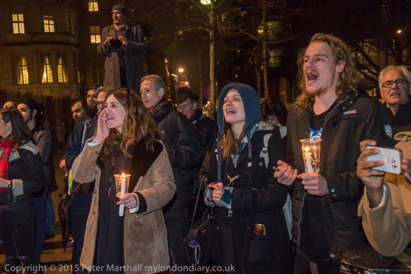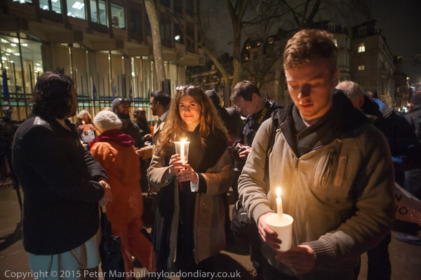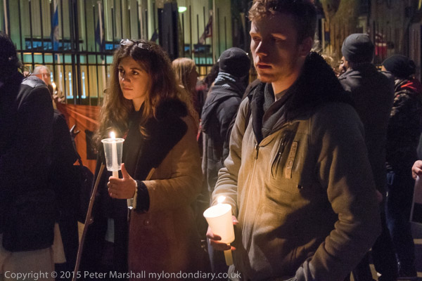 People hold candles at the vigil in front of the US Embassy