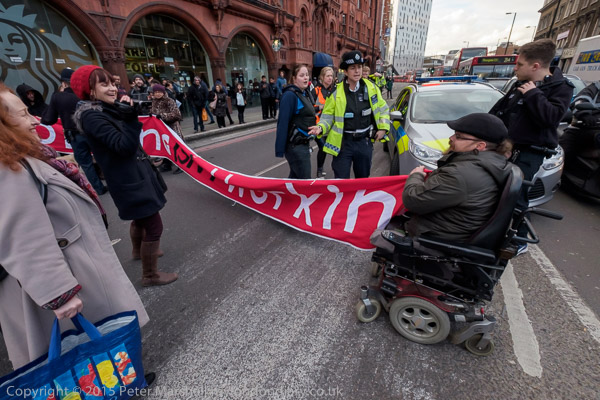 One of the police loses her temper a little on City Rd and started pushing Andy and his scooter around - and another officer talks with her