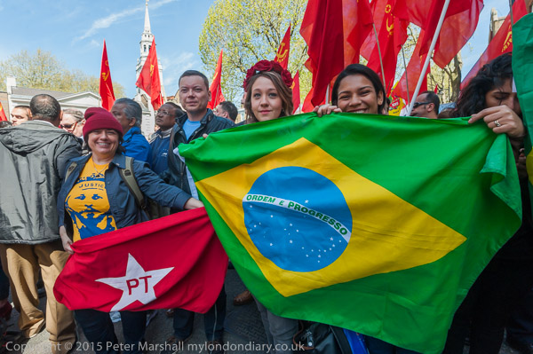 The Brazilians behind me were excited when he condemned the attempt to impeach President Dilma Rousseff