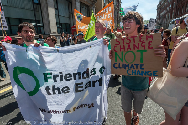 ![]() Natalie Bennett with Kye Gbangbola on the march ![]() DECC - Your Fracking Methand is Insane - and the Axe Drax dinosaur ![]() The sand on the global timer has run out ![]() Green MNEP for London Jean Lambert was on the march along with other Greens ![]() ![]() 'System Change NOT Climate Change' and Waltham Forest Friends of the Earth ![]() Global Justice Reading with the same message |