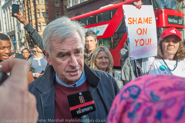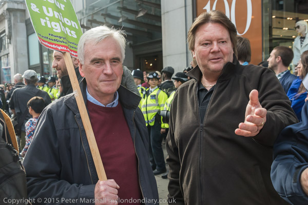 Shadow Chancellor John McDonnell, MP and Ian Hodson, Baker's Unions General Secretary outside Topshop