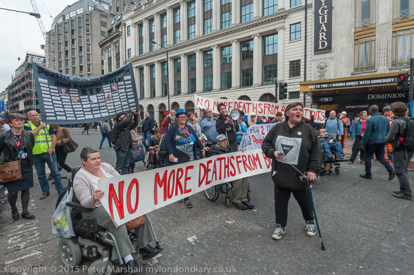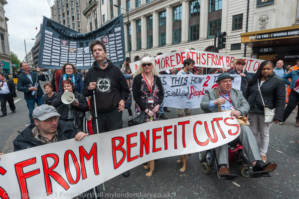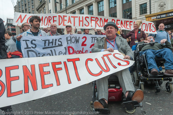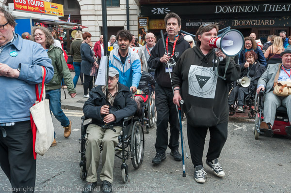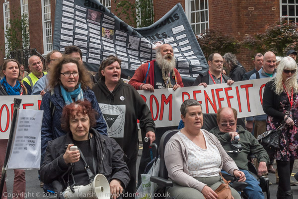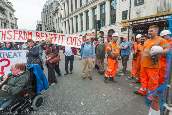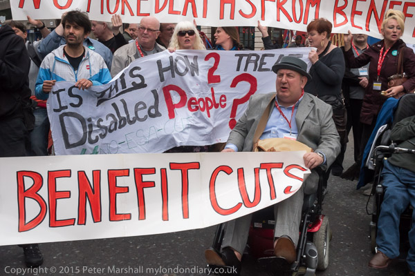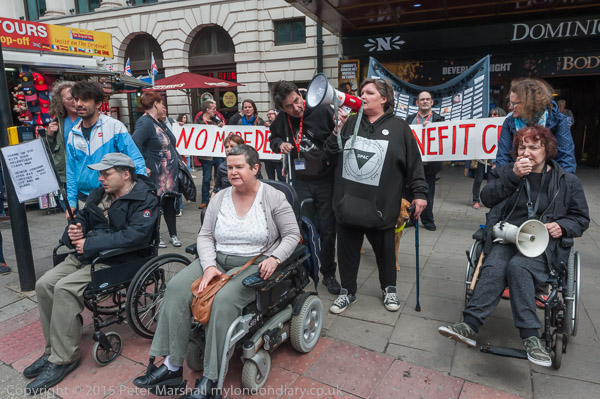 Delegates from the TUC disabled workers conference came out to protest during the lunch break, lining up