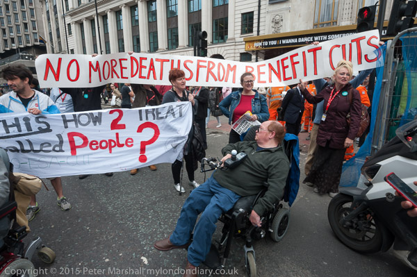 with the disabled in their fight against benefits sanctions and cuts which are causing distress and death