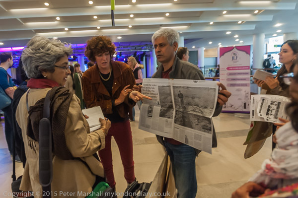 and stand at the entrance to the Clore Ballroom, the main stage for the Jaipur Literary Festival