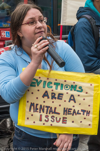 A trade unionist from Harlow speaks in support of the protest; 'Housing is a Mental Health Issue'