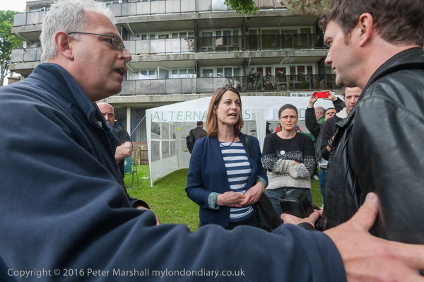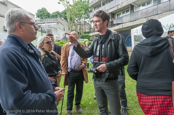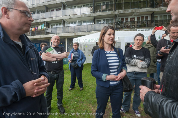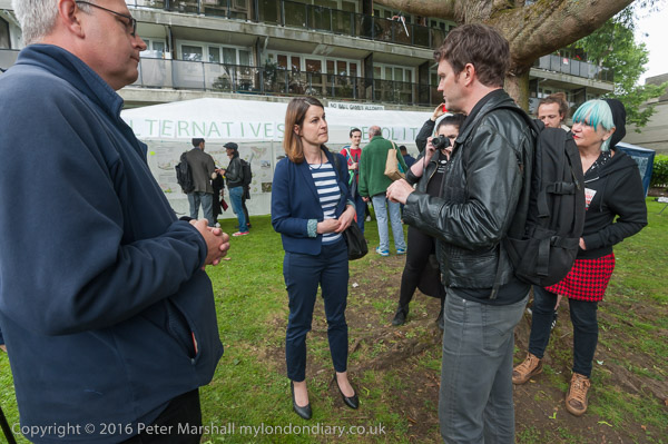 Simon Elmer of Architects for Social Housing asks Helen Hayes MP why she is at the Open Estates event