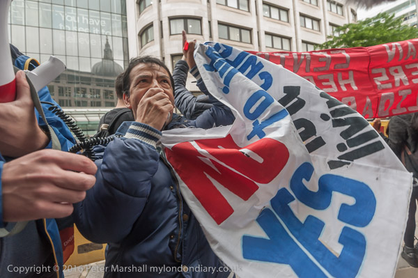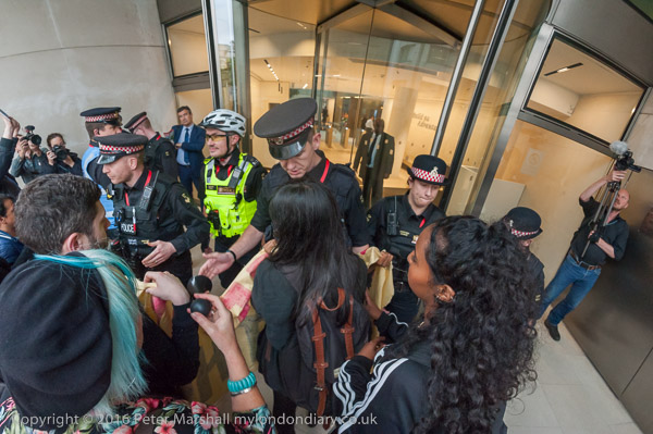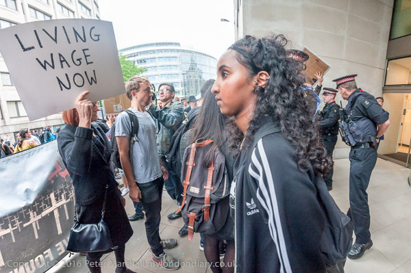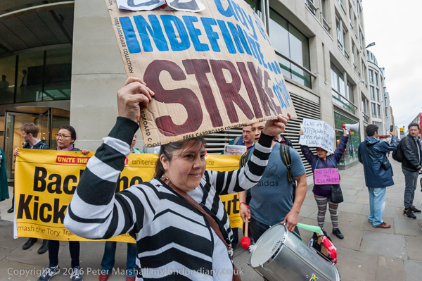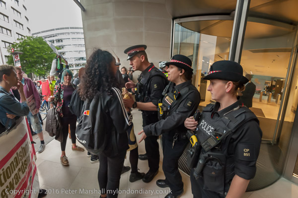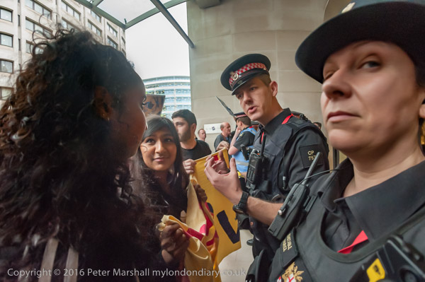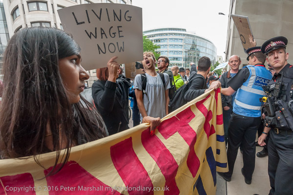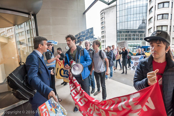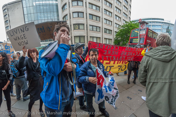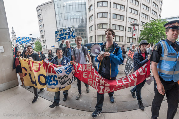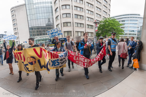 The UVW marchers arrive at the CBRE offices at St Martin's COurt