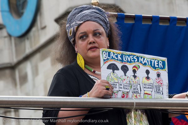 Zita Holbourne of BARAC and PCS holds up her 'Black Lives Matter' poster