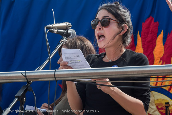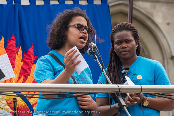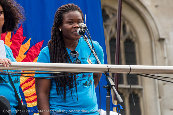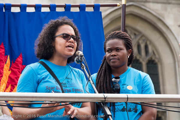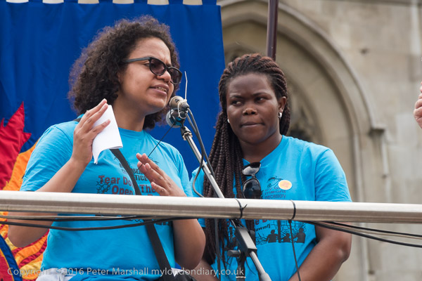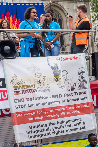 Antonia Bright from Movement for Justice came to the stage with an asylum seeker