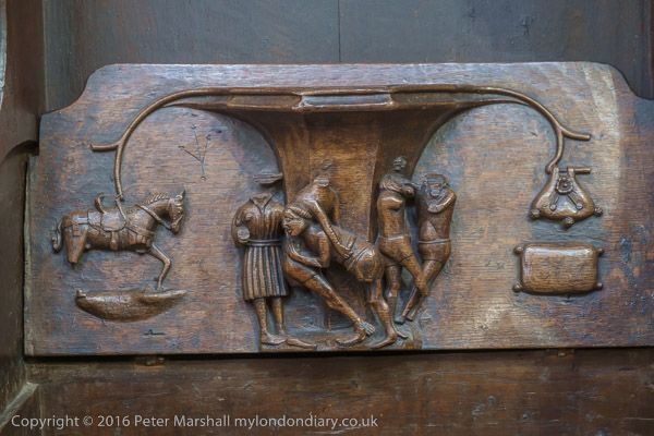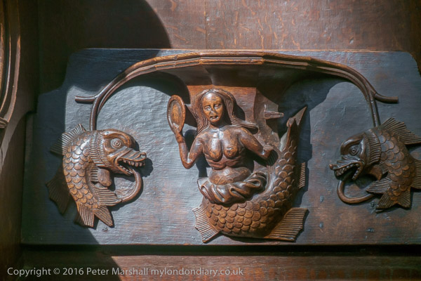 There are many of these interesting carvings in the chancel of St Laurence's Church, some rather more pious