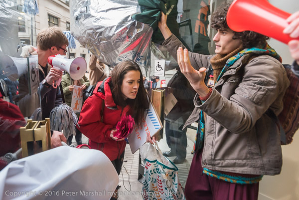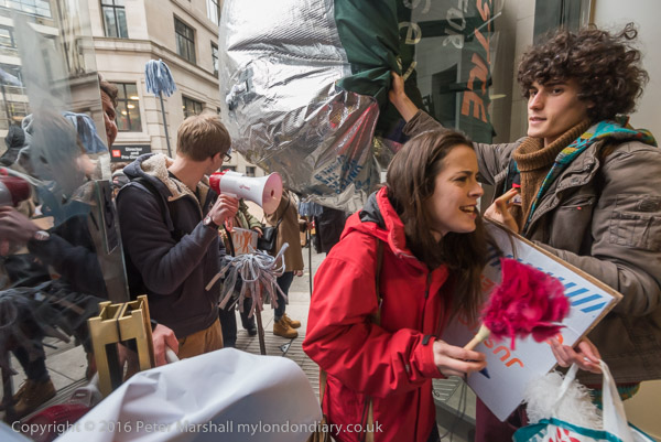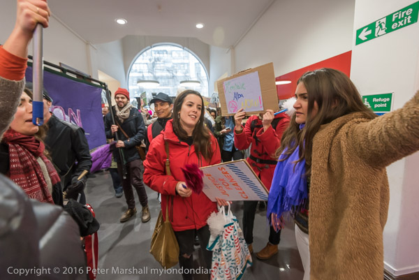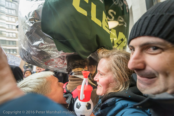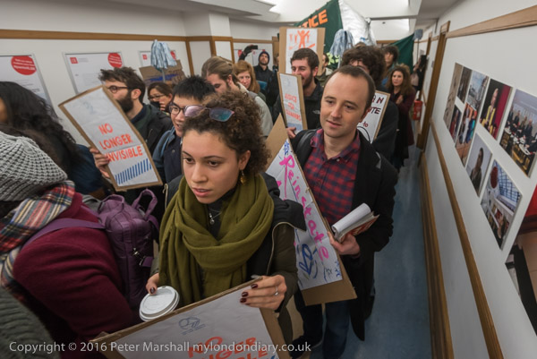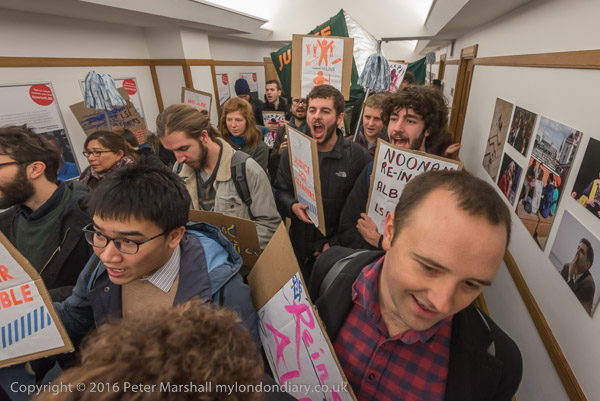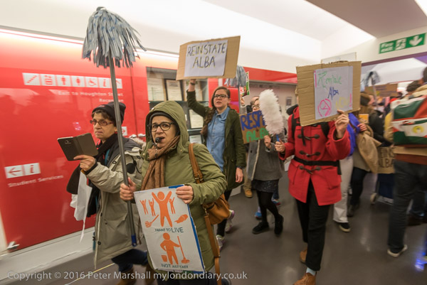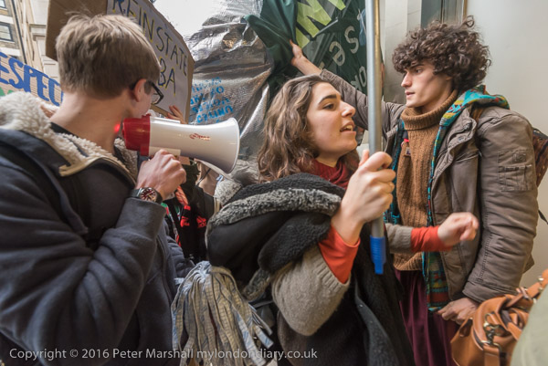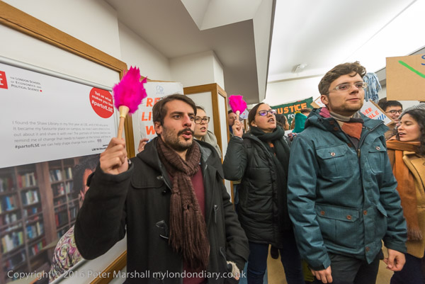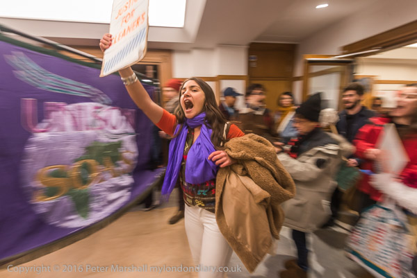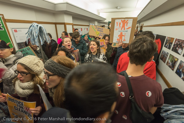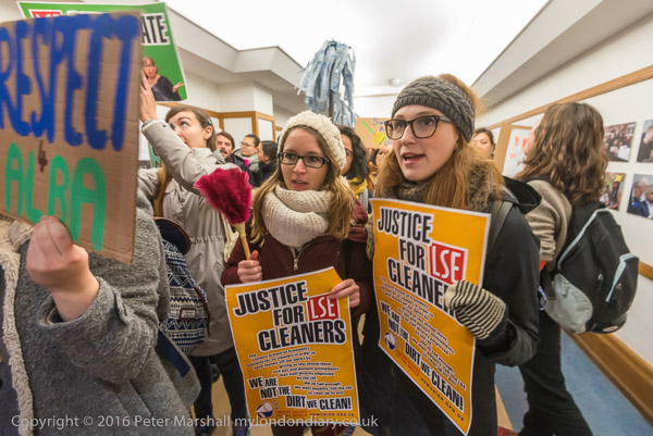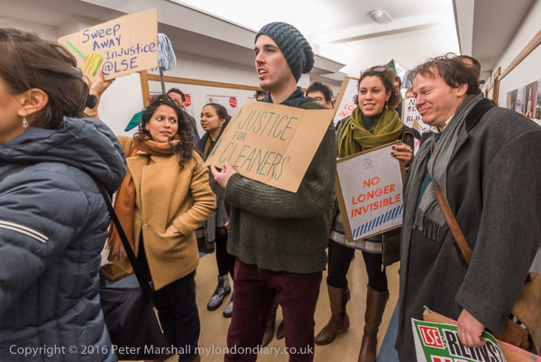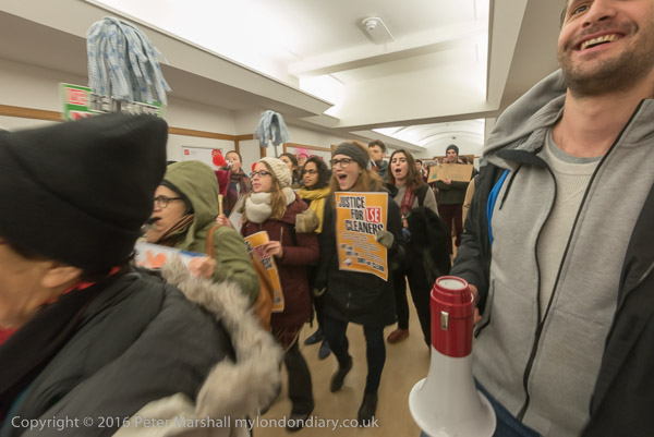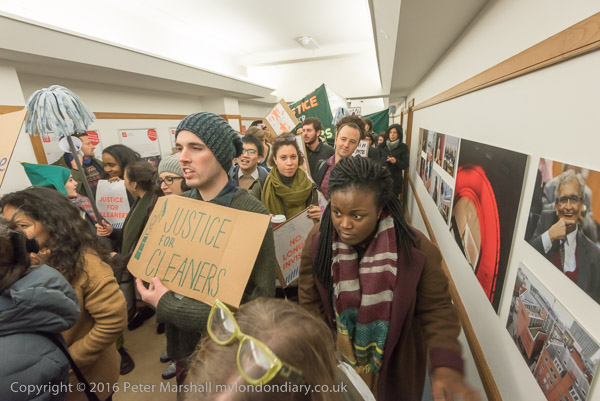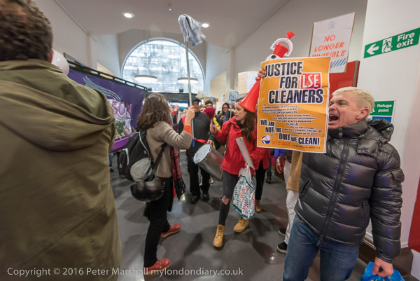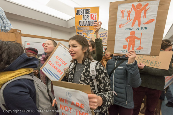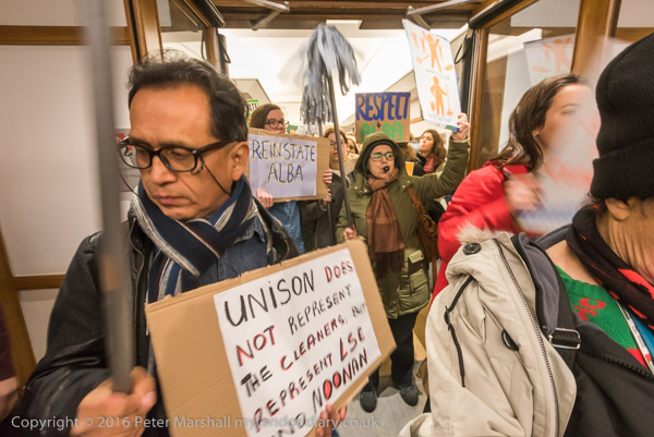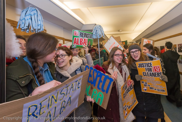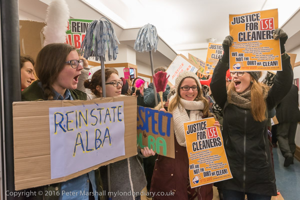 the protesters shout for justice for cleaners and for the LSE to reinstate Alba