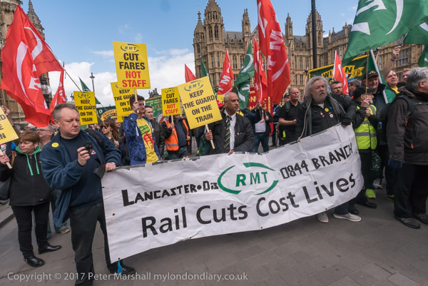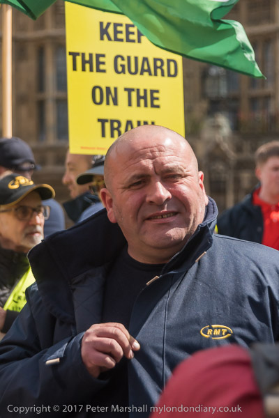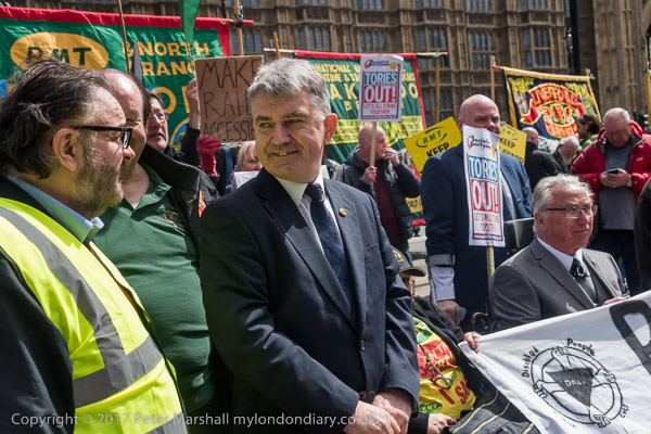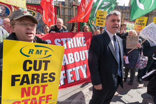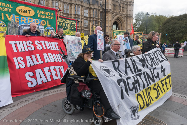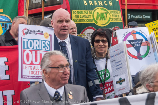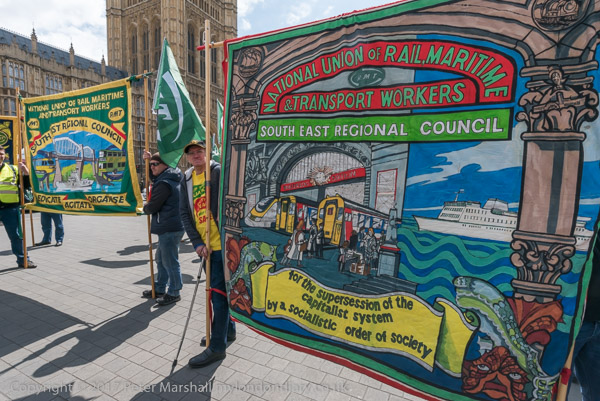 A banner from Liverpool remembers Bob Crow (1961-2014) sadly missed by trade